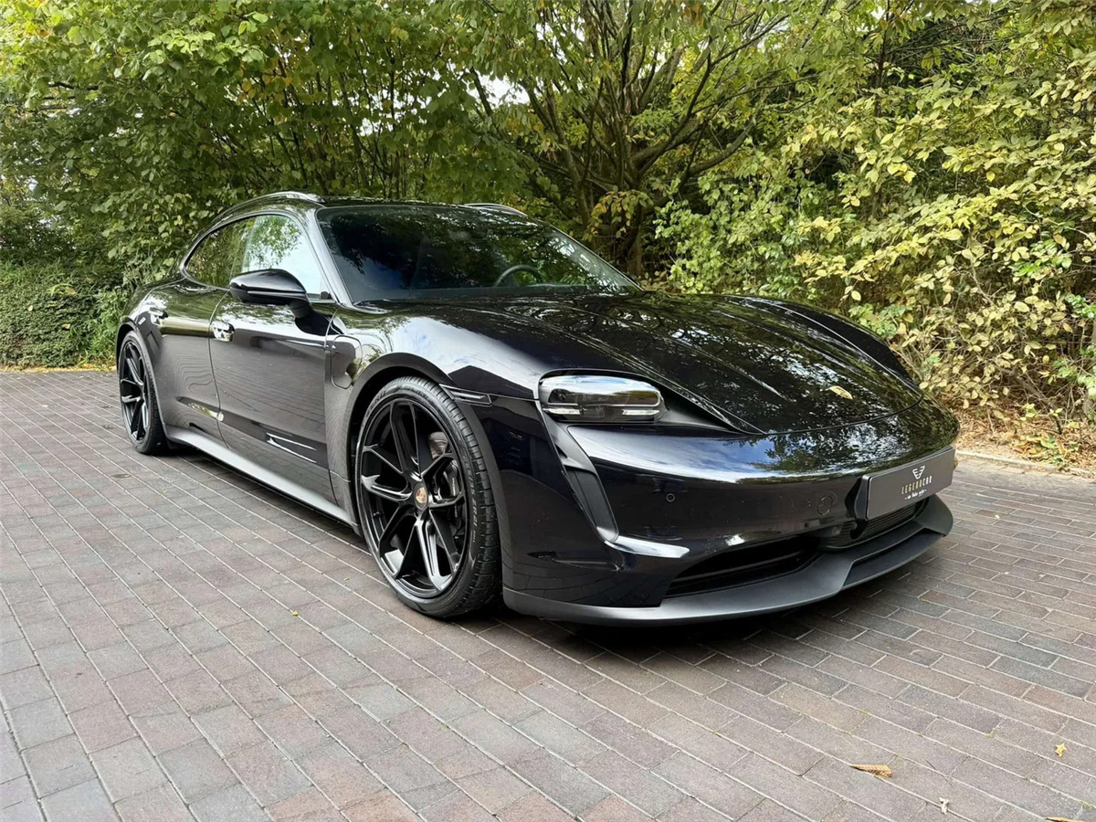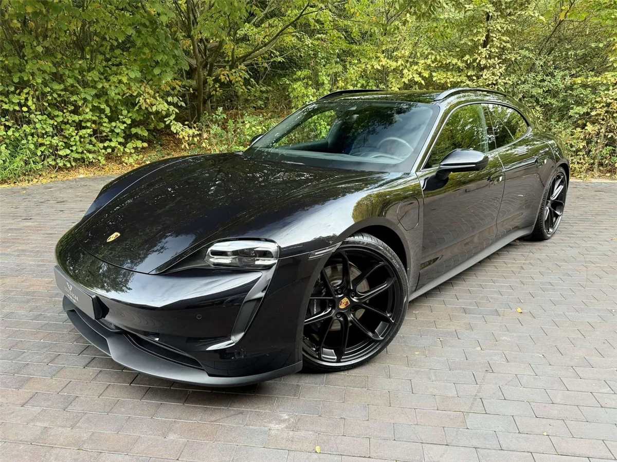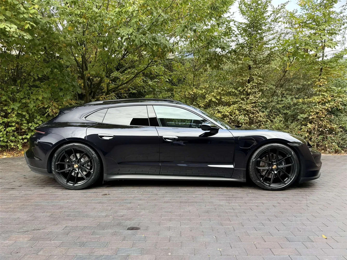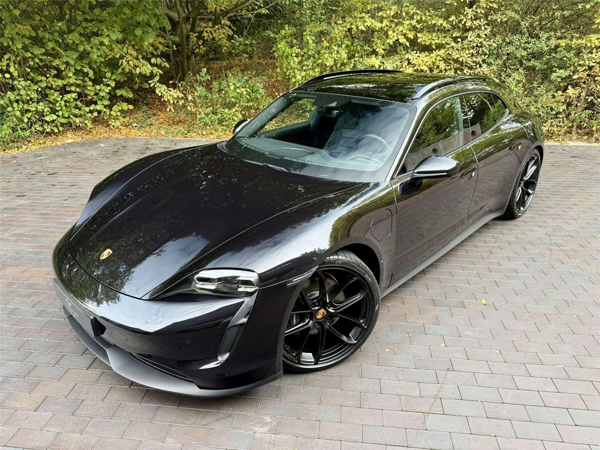 Porsche Taycan Sport Turismo à vendre, premier propriétaire. C'est une voiture de direction de Porsche AG. Elle a sa peinture d'origine et n'a jamais eu d'accident.