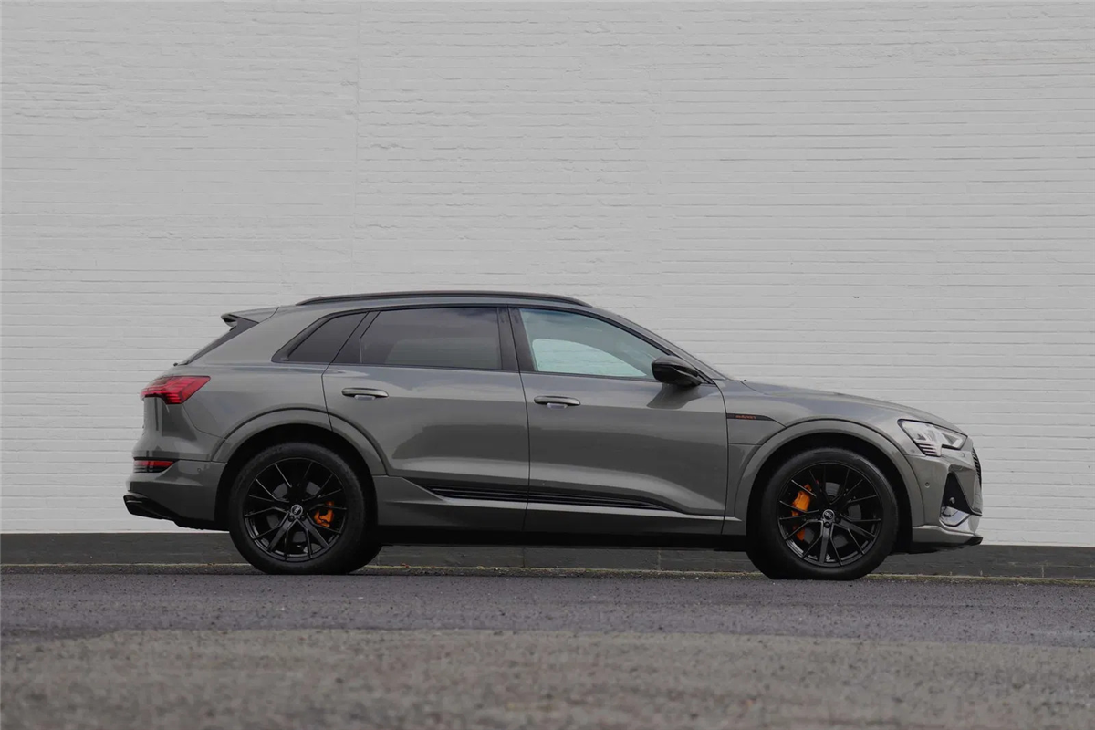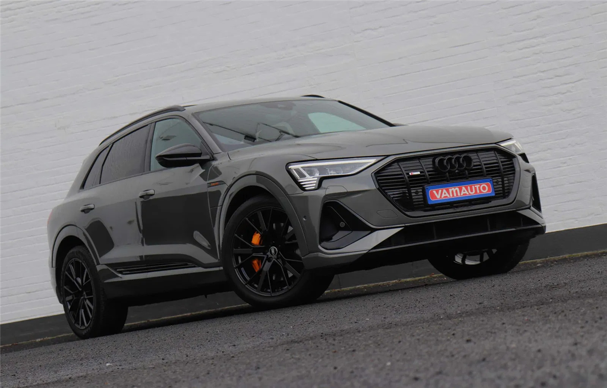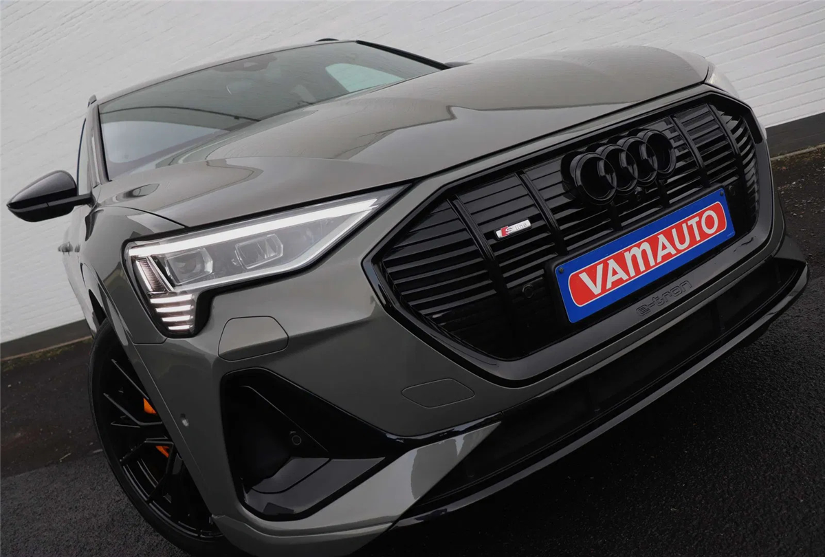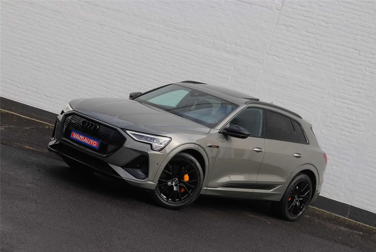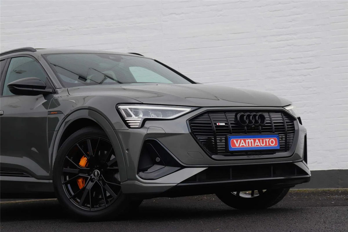 Prachtige Audi E-tron 55 Quattro S-line Black Edition in het unieke Chronos Grey metallic met een fenomenale optielijst voor een top prijs!