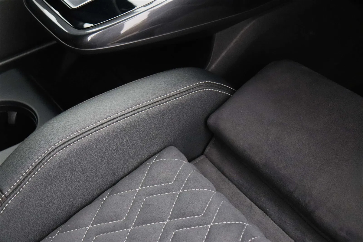 • Lederen sportinterieur met middenstuk in Microvezel Dinamica met honinggraat motief + contrasterende stiksels in Rotsgrijs