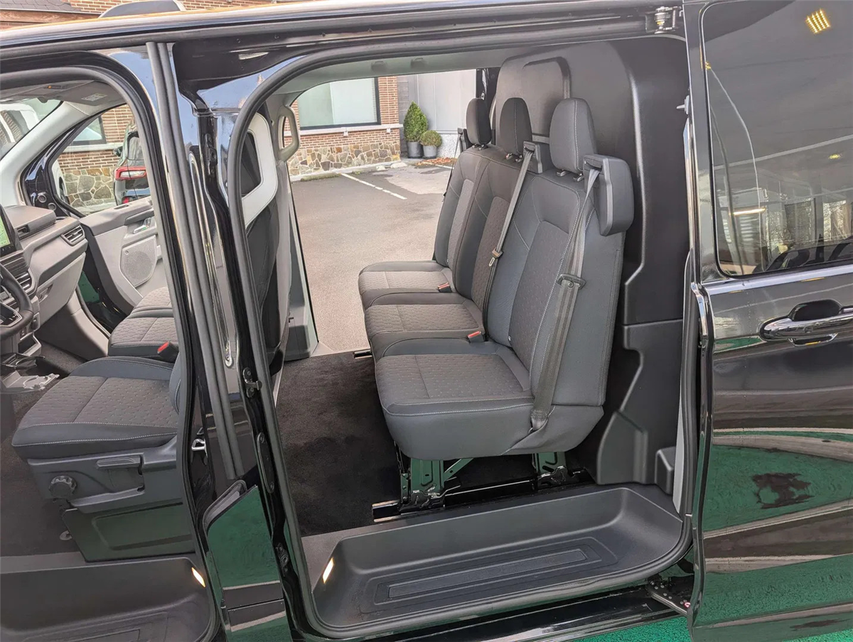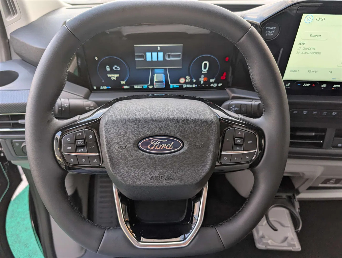 FORD GARANTIE EXTRA TOT 26/09/2030 MAX. 150.000 KM // Ford Assistance 24/24u // Keuring en Car-Pass // Metaalkleur Agate Black, 360°camera (camera voor/ achter/ zijdelings), Aanrijding-preventie assistent 2.2, Adaptieve cruise control incl. Stop & Go, Navigatiesysteem, BLIS dodehoekwaarschuwing incl. Cross Traffic Alert, Lane Keeping 'hulp en waarschuwing', Remhulp achteruit, Shuifdeur links en rechts met donkergetinte ruiten, Adaptive DSS LED koplampen met LED achterlichten, 17" Premium gespoten velgen (215/60 R17C 109/107T / Goodyear banden, Montage elektrische kit voor naplaatsing trekhaak, Automatische airco, Afsluitbaar handschoenkastje, Banden herstelkit, Parkeerhulp voor en achter, Voorbumper in koetswerkkleur, Achterbumper in koetswerkkleur, Elektrisch bedienbare/ verwarmbare en automatisch inklapbare spiegels, Buitenspiegelkappen in koetswerkkleur, Super heldere laadruimte-verlichting, Handgrepen aan de binnenkant met zonnebrilhouder voor de bestuurderInterior, Stuurwiel bekleding Sensico leder, Kunststof laadvloerbekleding, Bestuurders en passagiersairbag (incl. desactiveringsmodus), Sleutelvrije start- en toegangsfunctie, Lendensteun en armsteun op 4-weg verstelbare & verwarmbare bestuurderszetel, verwarmbare dubbele passagiersbank, Smalle console en neerklapbaar tafeltje, Verankeringsogen in laadruim, Automatische koplampen, Ruitenwissers met regensensor, Getint glas en donker getint vanaf 2e rij, Electric Windshield Defroster, 13" Aanraakscherm, LED laadruimteverlichting, Tussenschot, Dubbele handgrepen, Kunststof vloerbekleding cabine, Audio pack 2 FM/DAB+, Wireless Android Auto/ Apple Carplay, Geintegreerde 5G modem, e-Call Europees noodhulpsysteem, SYNC IV, Pre-Collision assistent 2.0, ABS/ ESP/ EBA, Intelligente snelheidsassistent, snelheidsbordherkenning, Cruise Controle, Bandendruk controle systeem, Lane Keeping Aid, Verwittiging bij rijden in de foutieve richting, Elektrische deurvergrendeling, 2 sleutels met afstandsbediening