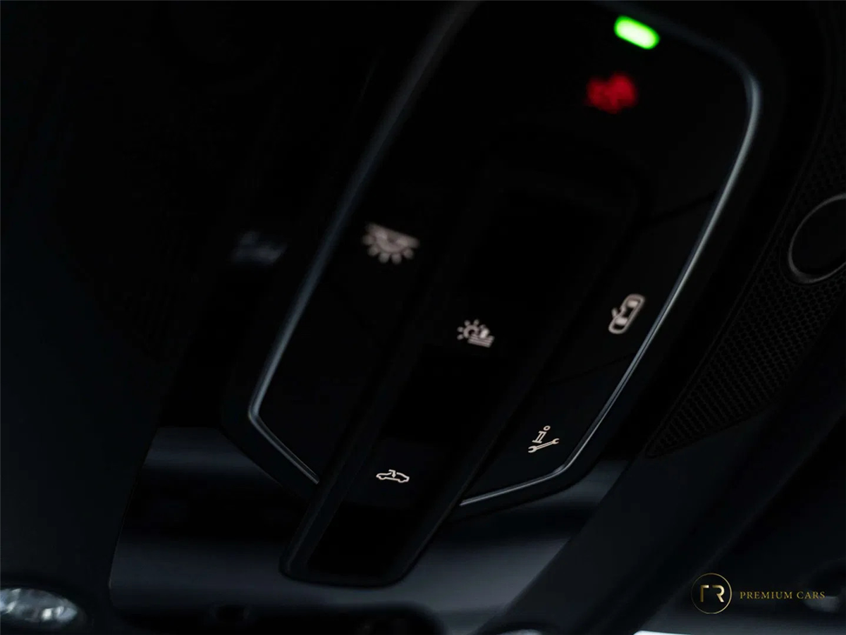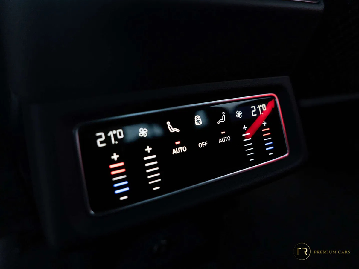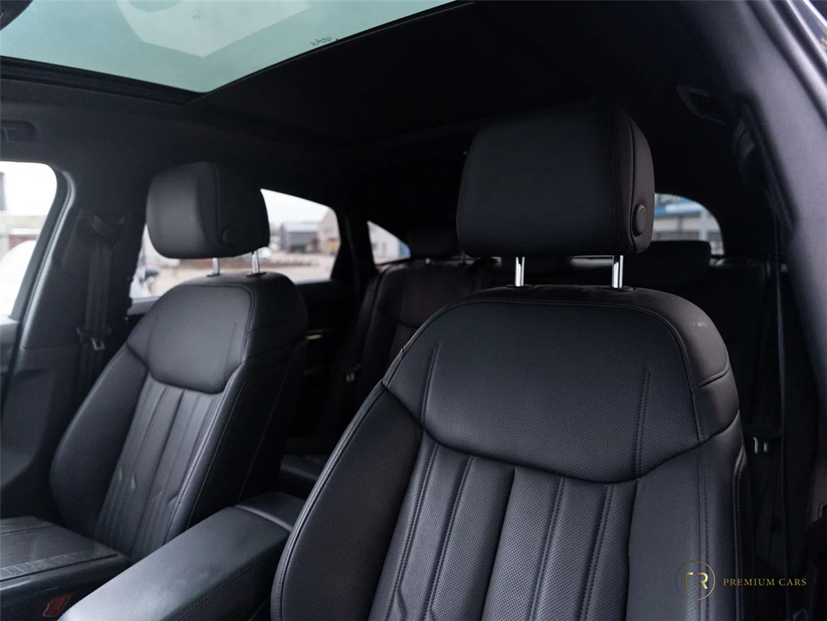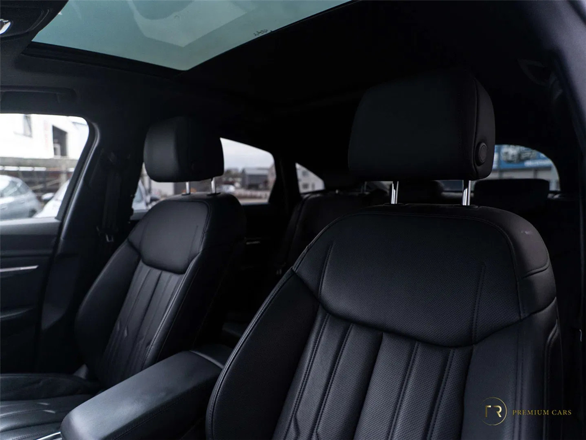 De combinatie van Mythosschwarz Metallic, 21” velgen en het grote panoramadak geeft deze Sportback een uitgesproken en luxueuze uitstraling.