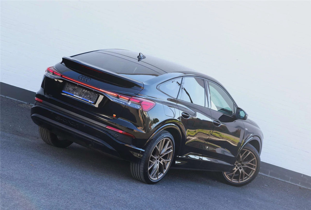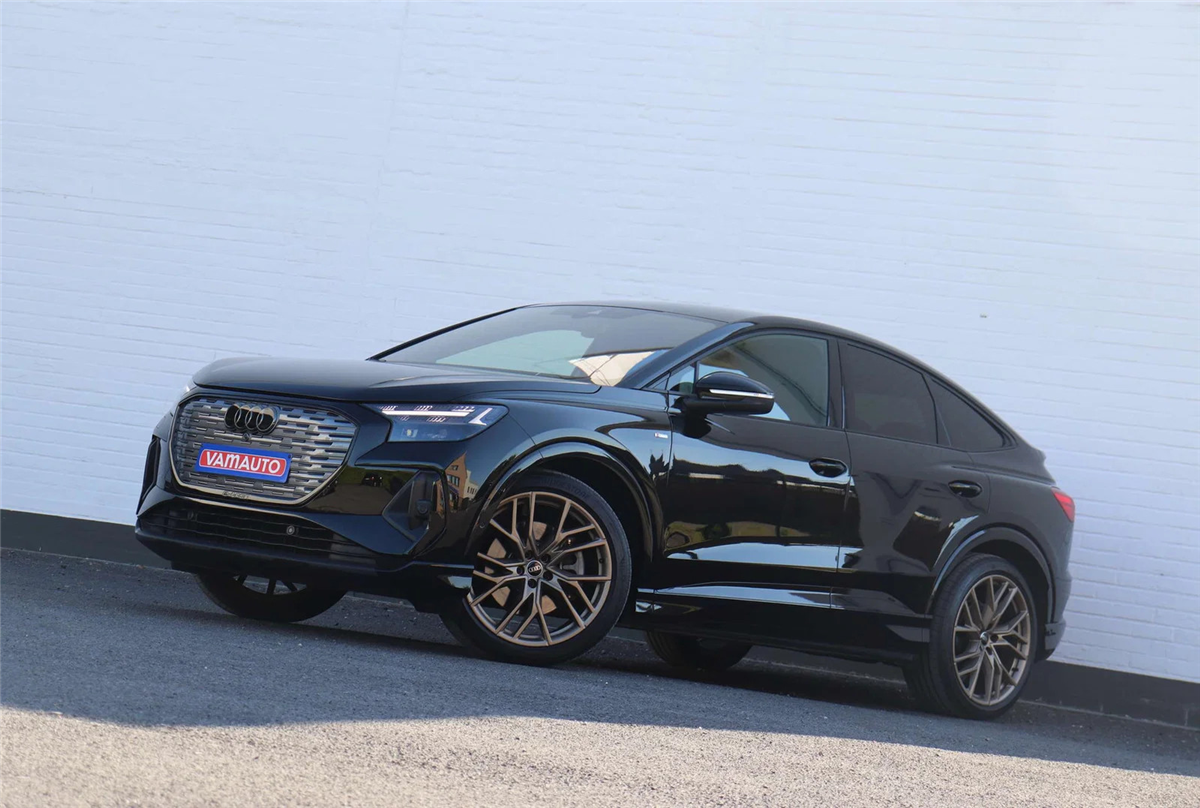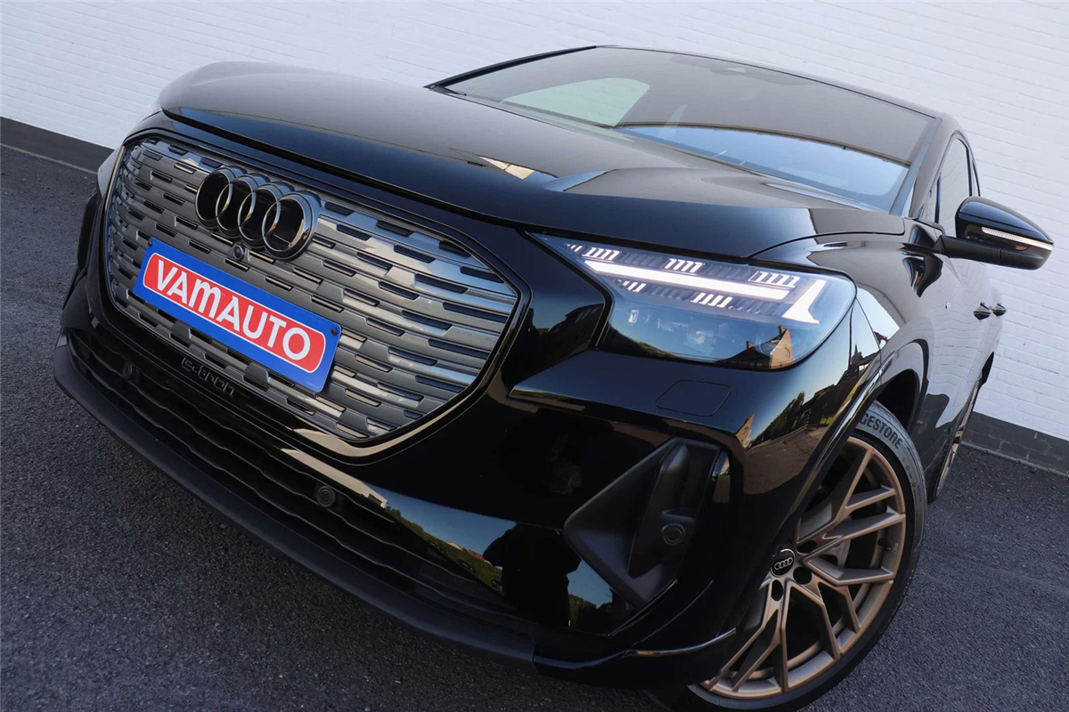 Prachtige Audi Q4 e-Tron Sportback 45 met het volledige S-line pakket en de exclusieve Shadow Plus Look.