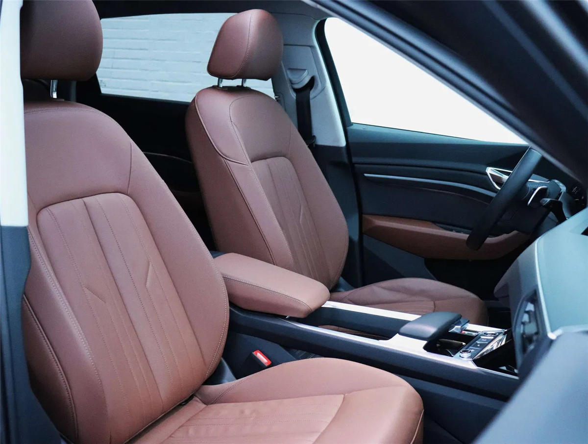 - Cognac lederen interieur met contrastnaden in wit