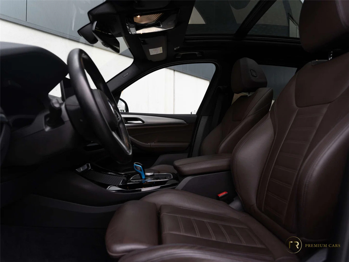 100% Électrique | M Sport | Carbonschwarz MetallicLa BMW iX3 M Sport dans l'élégante teinte Carbonschwarz Metallic est un SUV premium 100% électrique qui allie dynamisme et luxe à la perfection. Avec 210 kW et une propulsion arrière, cet iX3 offre une expérience de conduite directe et sportive. Par rapport à la version de base, ce véhicule est en plus équipé du système audio surround Harman/Kardon, de l'affichage tête haute, du Comfort Access, du BMW Gesture Control, du vitrage acoustique de confort et du support lombaire pour les deux sièges avant. L'intérieur en cuir Vernasca/mokka avec surpiqûres décoratives confère à ce véhicule une ambiance chaleureuse et premium.