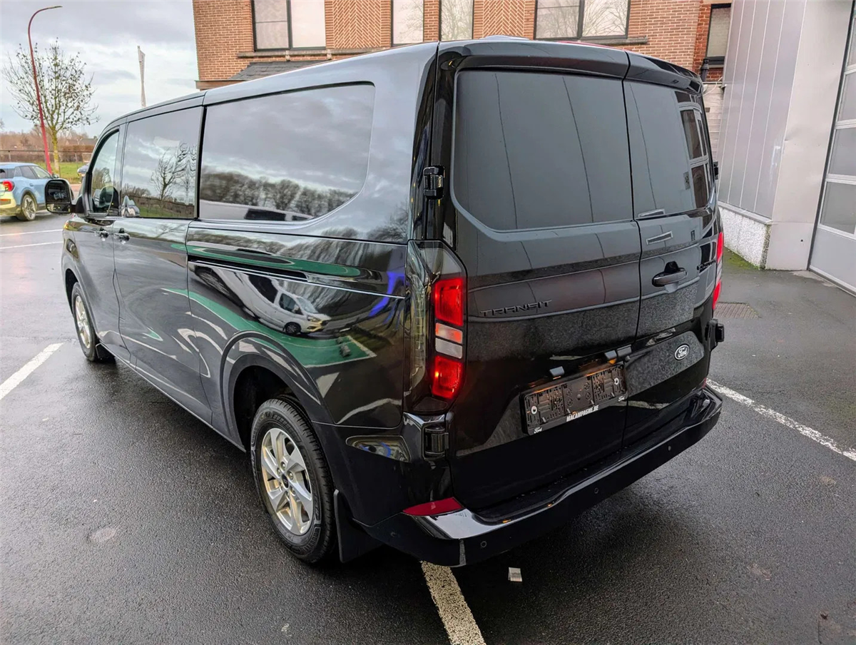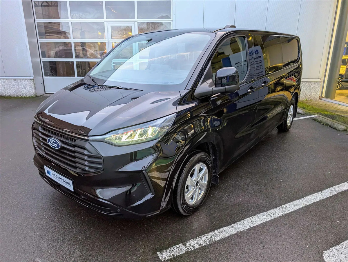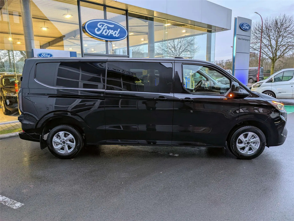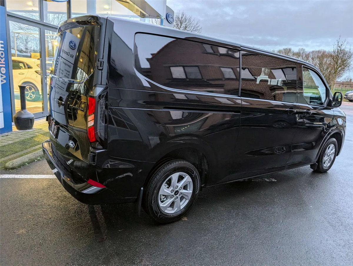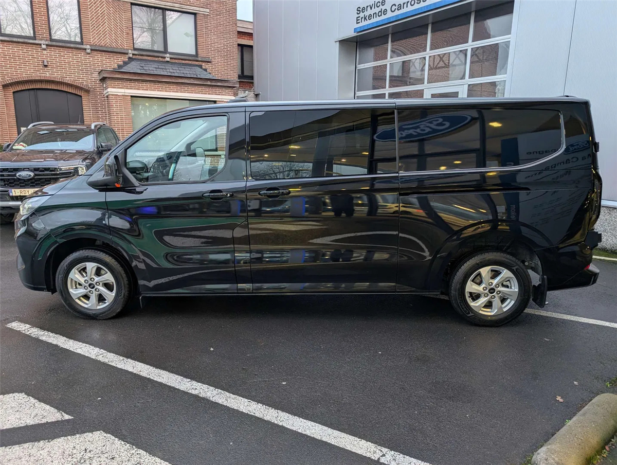 FORD GARANTIE EXTRA TOT 15/01/2031 MAX. 150.000 KM // Ford Assistance 24/24u // Keuring en Car-Pass // Metaalkleur Agate Black, Schuifdeur links en rechts, Verwarmbare 4-weg verstelbare bestuurderszetel met lendensteun en aanpasbare armsteun, Verwarmbare dubbele passagierszetel, Passagiersairbag met mogelijkheid tot desactivering, gordijn- en zijdelingse airbags, Kleine vloerconsole, Klaptafeltje, Elektrische kit voor naplaatsing trekhaak, 16" stalen reservewiel, Brandstoftank met groter bereik 70l, Automatische airco twee zones (bestuurder en passagier), LV PTC-verwarming, Automatische airco, Afsluitbaar handschoenkastje, Parkeerhulp voor en achter, Achteruitrijcamera, 6 Verankeringsogen, Vaste zijruit 2e rij links en rechts donker getint, Automatische koplampen en automatische ruitenwissers, Getinte ruiten, Spatlappen voor en achter, Automatische airco, LED laadruimverlichting, Kunststof tussenschot, Bekleding laadruim halve hoogte, Kunststof vloer in cabine, 2e zetelrij met 3 zitplaatsen opbergruimte onder de zetels, Leeslampjes achteraan, Elektrische ruiten vooraan, 13” touchscreen, FM/DAB+, Wireless Android Auto/ Apple Carplay, Bluetooth, USB aansluitingen, SYNC4, 5G modem, FordPass app, TPMS bandendruksensoren, ABS/ ESP/ EBA, Pré Collision Assist 2.0, Intelligente snelheidsassistentie, snelheidsbordherkenning, Cruise Control, Lane keeping aid, Verwittiging bij rijden in foutieve richting, Driver Alert System, Centrale deurvergrendeling met 2 afstandbedieningen, Keyfree start & entry, e-Call Europees noodhulpsysteem, Afsluitbaar handschoenkastje, Voor en achterbumper in koetswerkkleur, Elektrisch bedienbare/ verwarmbare/ automatisch inklapbare spiegels, Donker getinte ruiten achteraan, Buitenspiegelkappen in koetswerkkleur, Super heldere laadruimte-verlichting, Handgrepen aan binnenkant met zonnebrilhouder voor de bestuurderInterior, Stuurwiel bekleding Sensico leder, Kunststof laadvloerbekleding, 2e zetelrij met 3 zitplaatsen en opbergruimte onder de zetels, ISOFIX op buitenste zitplaatsen, Leeslampjes achteraan