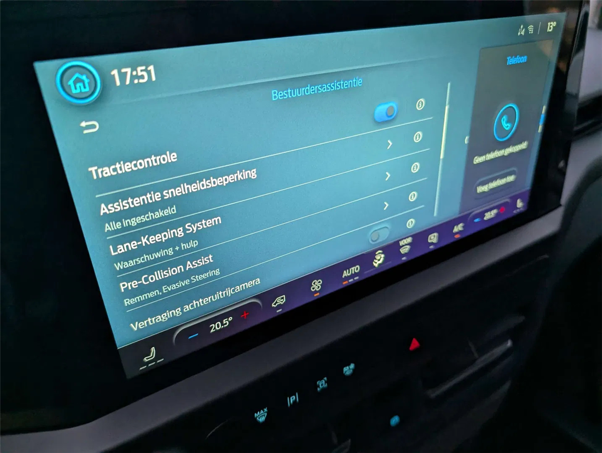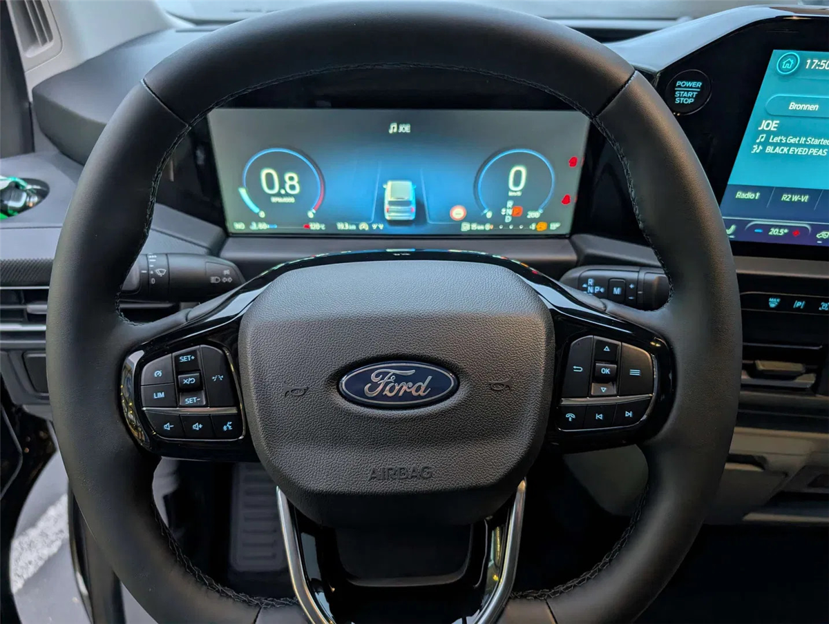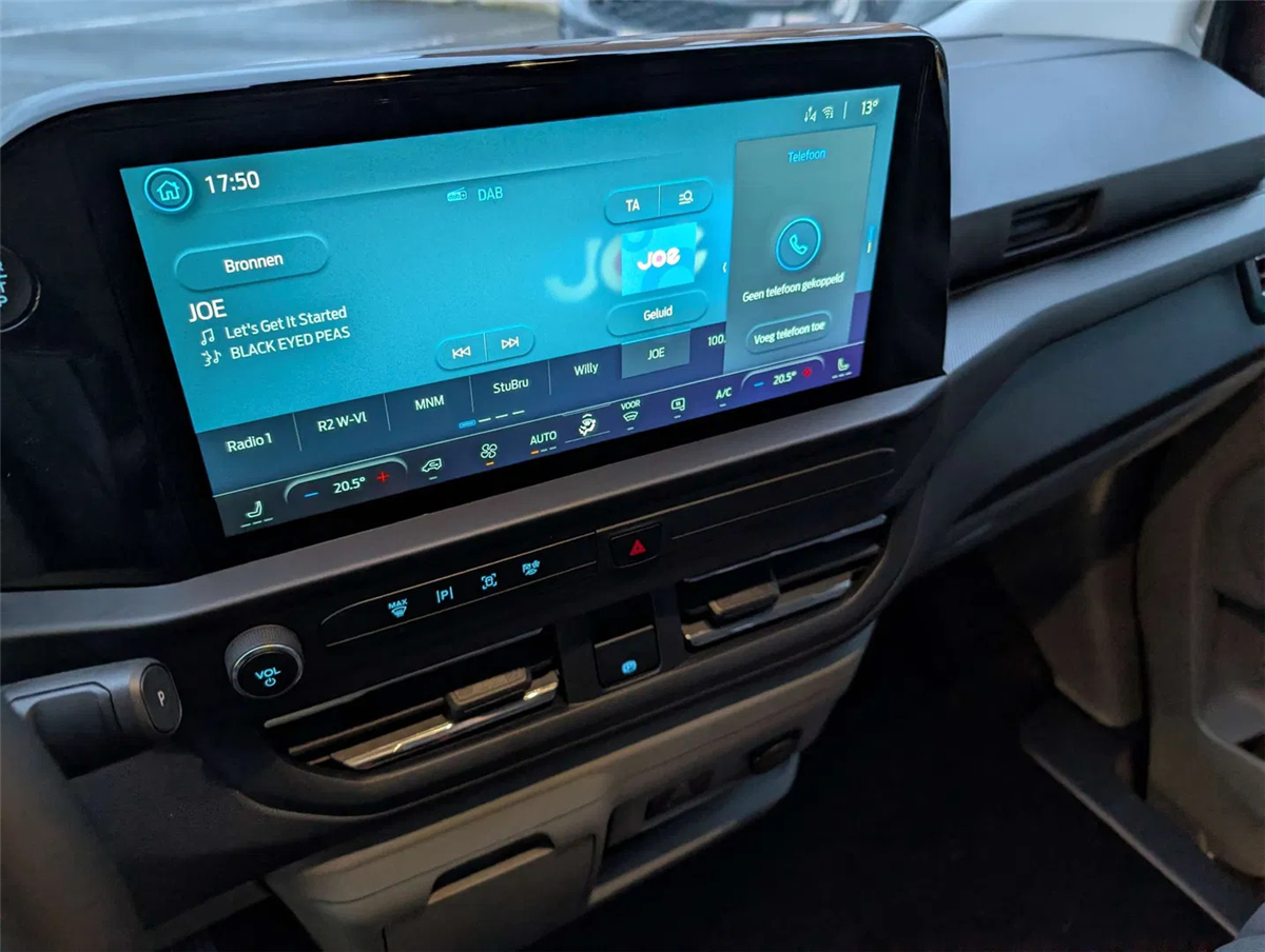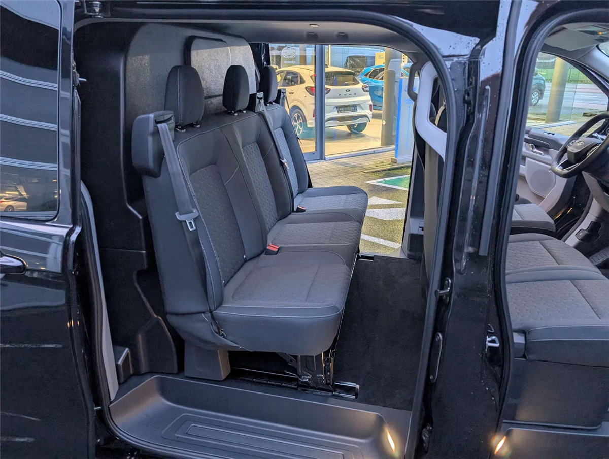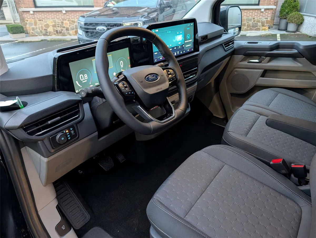 FORD GARANTIE EXTRA TOT 15/01/2031 MAX. 150.000 KM // Ford Assistance 24/24u // Keuring en Car-Pass // Metaalkleur Agate Black, Schuifdeur links en rechts, Verwarmbare 4-weg verstelbare bestuurderszetel met lendensteun en aanpasbare armsteun, Verwarmbare dubbele passagierszetel, Passagiersairbag met mogelijkheid tot desactivering, gordijn- en zijdelingse airbags, Kleine vloerconsole, Klaptafeltje, Elektrische kit voor naplaatsing trekhaak, 16" stalen reservewiel, Brandstoftank met groter bereik 70l, Automatische airco twee zones (bestuurder en passagier), LV PTC-verwarming, Automatische airco, Afsluitbaar handschoenkastje, Parkeerhulp voor en achter, Achteruitrijcamera, 6 Verankeringsogen, Vaste zijruit 2e rij links en rechts donker getint, Automatische koplampen en automatische ruitenwissers, Getinte ruiten, Spatlappen voor en achter, Automatische airco, LED laadruimverlichting, Kunststof tussenschot, Bekleding laadruim halve hoogte, Kunststof vloer in cabine, 2e zetelrij met 3 zitplaatsen opbergruimte onder de zetels, Leeslampjes achteraan, Elektrische ruiten vooraan, 13” touchscreen, FM/DAB+, Wireless Android Auto/ Apple Carplay, Bluetooth, USB aansluitingen, SYNC4, 5G modem, FordPass app, TPMS bandendruksensoren, ABS/ ESP/ EBA, Pré Collision Assist 2.0, Intelligente snelheidsassistentie, snelheidsbordherkenning, Cruise Control, Lane keeping aid, Verwittiging bij rijden in foutieve richting, Driver Alert System, Centrale deurvergrendeling met 2 afstandbedieningen, Keyfree start & entry, e-Call Europees noodhulpsysteem, Afsluitbaar handschoenkastje, Voor en achterbumper in koetswerkkleur, Elektrisch bedienbare/ verwarmbare/ automatisch inklapbare spiegels, Donker getinte ruiten achteraan, Buitenspiegelkappen in koetswerkkleur, Super heldere laadruimte-verlichting, Handgrepen aan binnenkant met zonnebrilhouder voor de bestuurderInterior, Stuurwiel bekleding Sensico leder, Kunststof laadvloerbekleding, 2e zetelrij met 3 zitplaatsen en opbergruimte onder de zetels, ISOFIX op buitenste zitplaatsen, Leeslampjes achteraan