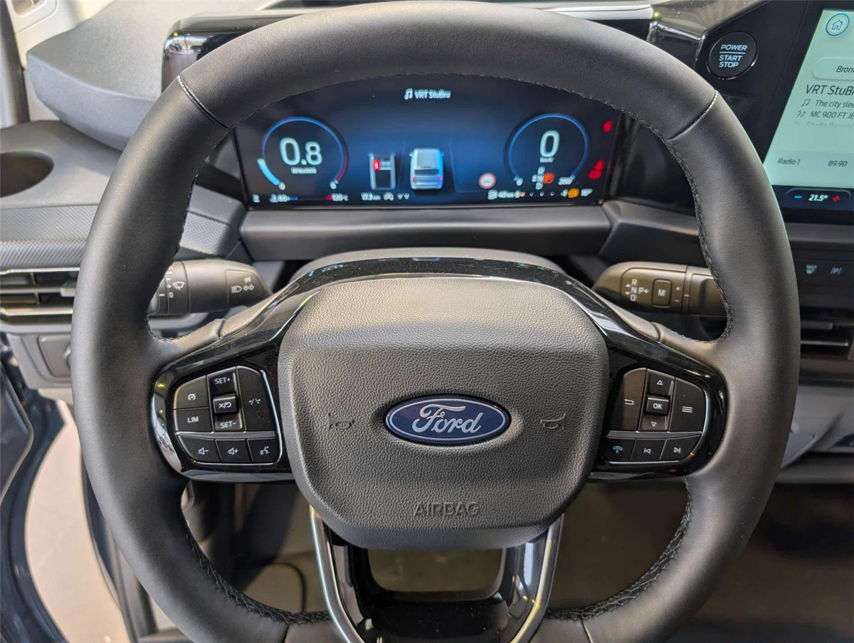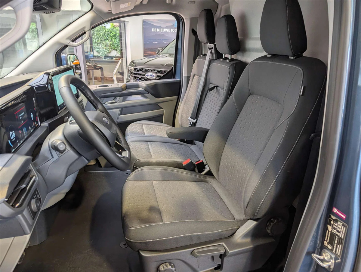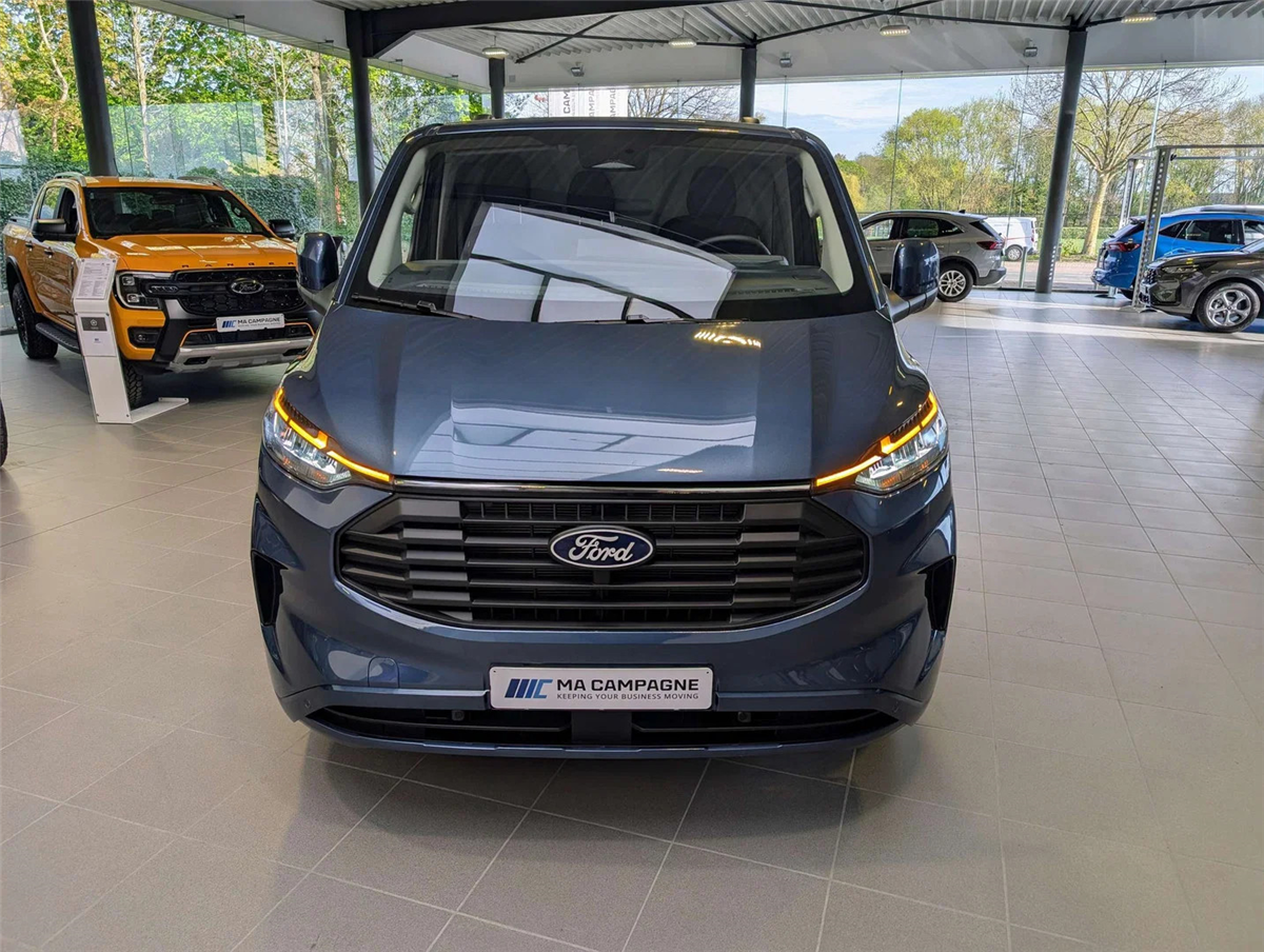 FORD GARANTIE EXTRA TOT 31/10/2030 MAX 200.000 KM/ Keuring en Car-Pass / Ford Assistance 24/24u // Kleur Chrome Blue, Navigatiesysteem, Zetelpack 47 Lendensteun en armsteun op 4-weg verstelbare & verwarmbare bestuurderszetel, verwarmbare dubbele passagiersbank met opbergruimte, Bestuurders/ passagiers/ zij/ gordijnairbags, smalle console en neerklapbaar tafeltje, Elektrische kit voor naplaatsing trekhaak, 17" Premium gespoten velgen 215/60 R17C 109/107T Goodyear banden, Verwarmbaar stuurwiel Sensico-bekleding, 6 Luidsprekers High series B&O met subwoofer (doorlaadluik in tussenschot vervalt), Draadloos opladen voor smarthphones, Stroomomvormer 230V/400W, Brandstoftank met groter bereik 70l, Rechter zijschuifdeur, 8 Verankeringsogen, Elektrisch bediendbare/ verwarmbare/ inklapbare spiegels, LED koplampen, Automatische koplampen, Ruitenwissers met regensensor, Getint glas, Electric Windshield Defroster, 13" Aanraakscherm, FM/ DAB+, SYNC4, Wireless Android Auto/ Apple Carplay, USB aansluitingen, LED laadruimteverlichting, Metalen tussenschot zonder doorlaadluik, Dubbele handgrepen, Gedeeltelijk rubberen vloerbekleding in cabine, Electrische ruiten voor, Geintegreerde 5G modem, e-Call Europees noodhulpsysteem, Pre-Collision assistent 2.0, TS/HLA/ESP/TC/ABS remsysteem, Intelligente snelheidsassistent, Cruise Controle, Bandendruk controle systeem, Parkeerhulp voor en achter, Lane Keeping Aid, Snelheidsbord herkenning, intelligente snelheidslimitor, Verwittiging bij rijden in de foutieve richting, Centrale deurvergrendeling met afstandbediening, Keyfree start & entry, Automatische airco, Locking Glove Box Lid, Achteruitrijcamera, Voor en achterbumper in koetswerkkleur, Buitenspiegelkappen in koetswerkkleur, Super heldere laadruimte-verlichting, Handgrepen aan de binnenkant met zonnebrilhouder voor de bestuurder, Afwerkingspanelen zijwand laadruim volledige hoogte, Kunststof laadvloerbekleding