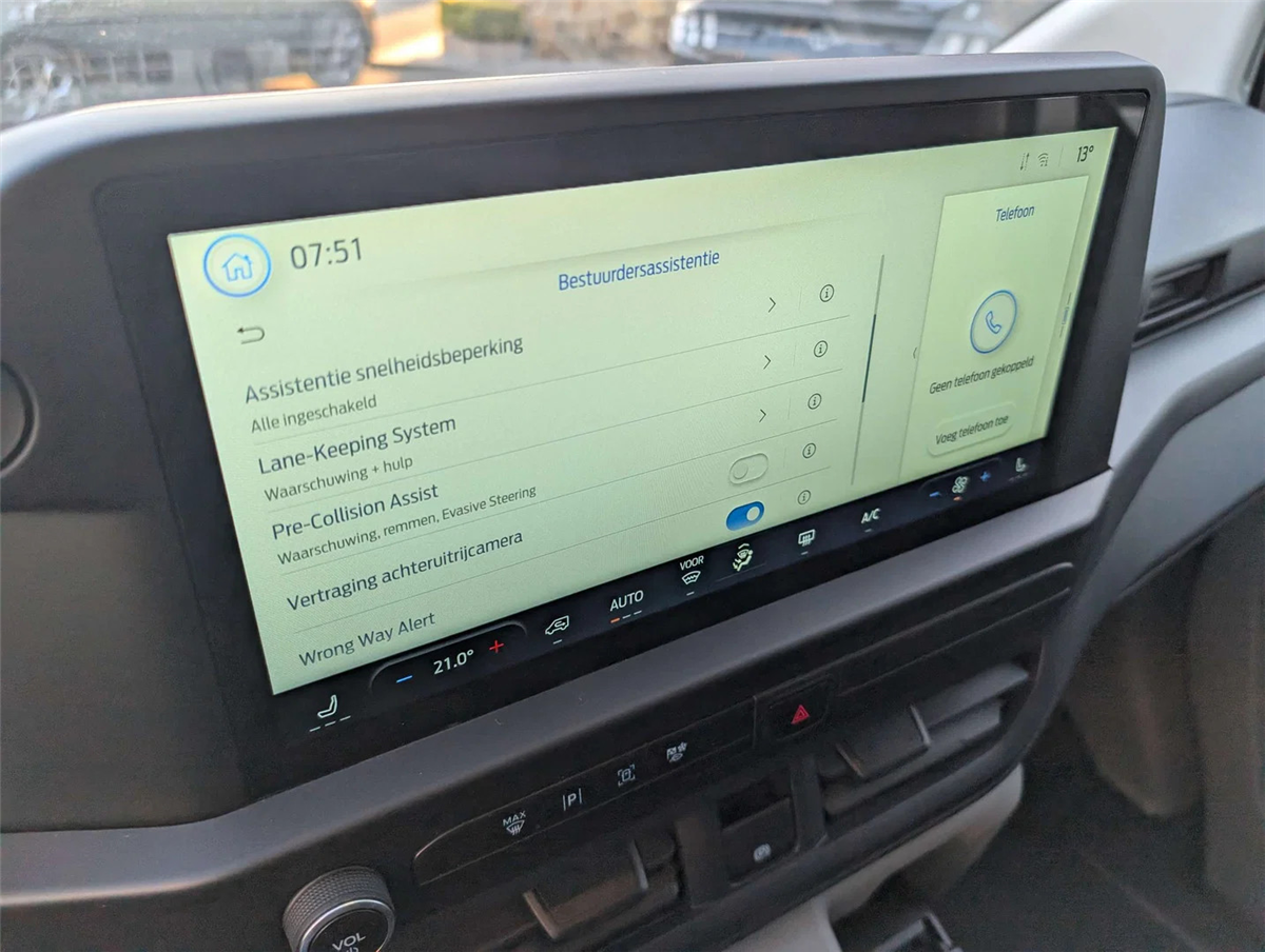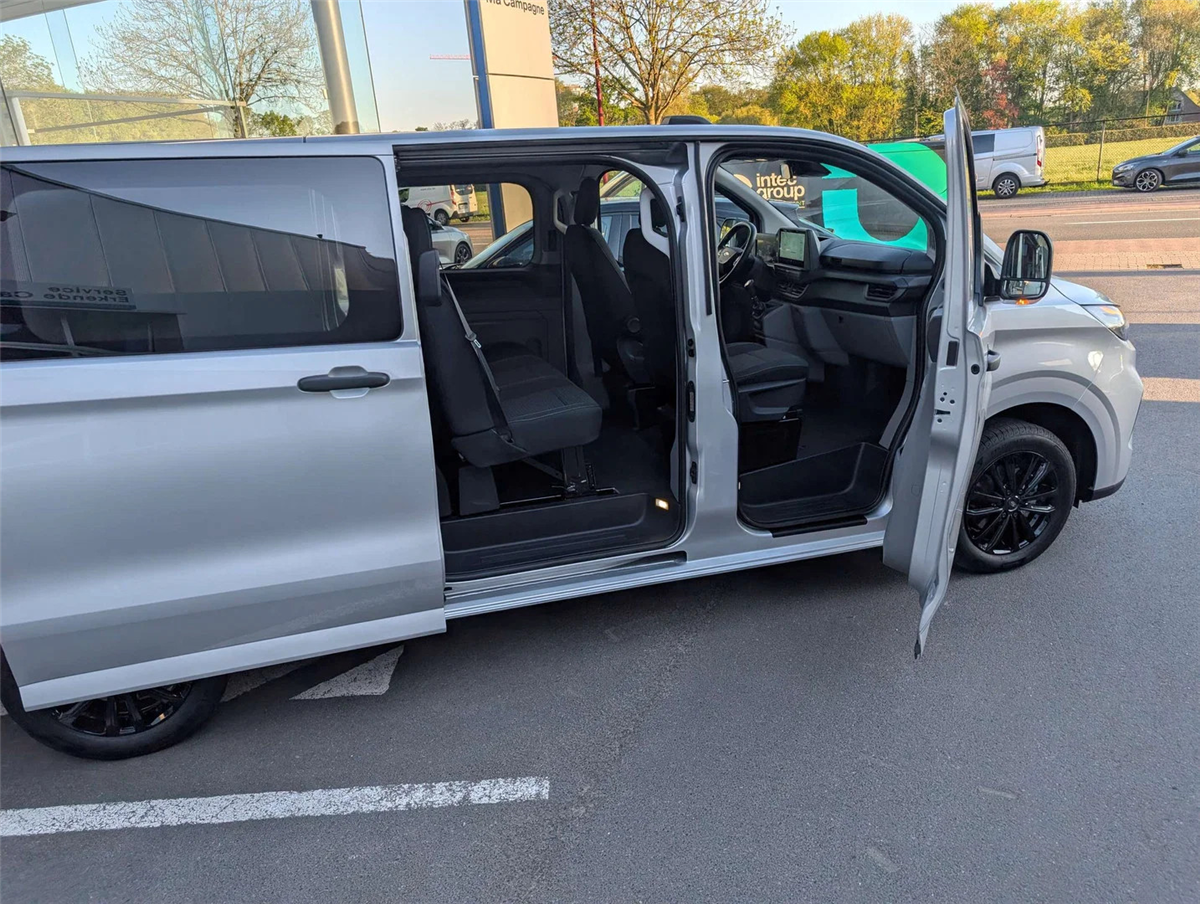 FORD GARANTIE EXTRA TOT 25/08/2030 MAX. 200.000 KM // Ford Assistance 24/24u // Keuring en Car-Pass // Metaalkleur Moondust Silver, FM/DAB+, Wireless Android Auto/ Apple Carplay, Bluetooth, USB aansluitingen SYNC4, 5G modem, FordPass app, e-Call Europees noodhulpsysteem, Schuifdeuren links en rechts, Dubbele achterdeuren met ruiten (donker getint) en ruitenwissers, Ruit in tussenschot, Kunststof laadvloerbedekking, Verwarmbare 4-weg verstelbare bestuurderszetel met lendensteun en armsteun, verwarmbare 2-weg verstelbare passagierszetel met lendensteun en armsteun, 16" stalen reservewiel, Vaste DDS Led koplamen incl. automatische grootlichten, Quickclear elektrisch verwarmbare voorruit, Ruuud alu velgen 17” zwart. All seasons banden, Voor en achterbumper gedeeltelijk in koetswerkkleur, Automatische airco, Afsluitbaar handschoenkastje, Parkeerhulp voor en achter, Achteruitrijcamera, 6 Verankeringsogen, Vaste zijruit 2e rij links en rechts (donker getint), Elektrisch bedienbare & verwarmbare spiegels, Automatische koplampen en automatische ruitenwissers, Getinte ruiten, Spatlappen voor en achter, Automatische airco, LED laadruimverlichting, Bekleding laadruim halve hoogte, Kunststof vloer in cabine, 2e zetelrij met 3 zitplaatsen, opbergruimte onder de zetels, Leeslampjes achteraan, Elektrische ruiten vooraan, 13” touchscreen, TPMS bandendruksensoren, ABS/ ESP/ EBA, Pré Collision Assist 2.0, Intelligente snelheidsassistentie, Snelheidsbordherkenning, Cruise Control, Lane keeping aid, Verwittiging bij rijden in foutieve richting, Driver Alert System, Centrale deurvergrendeling met 2 afstandbedieningen, Keyfree start